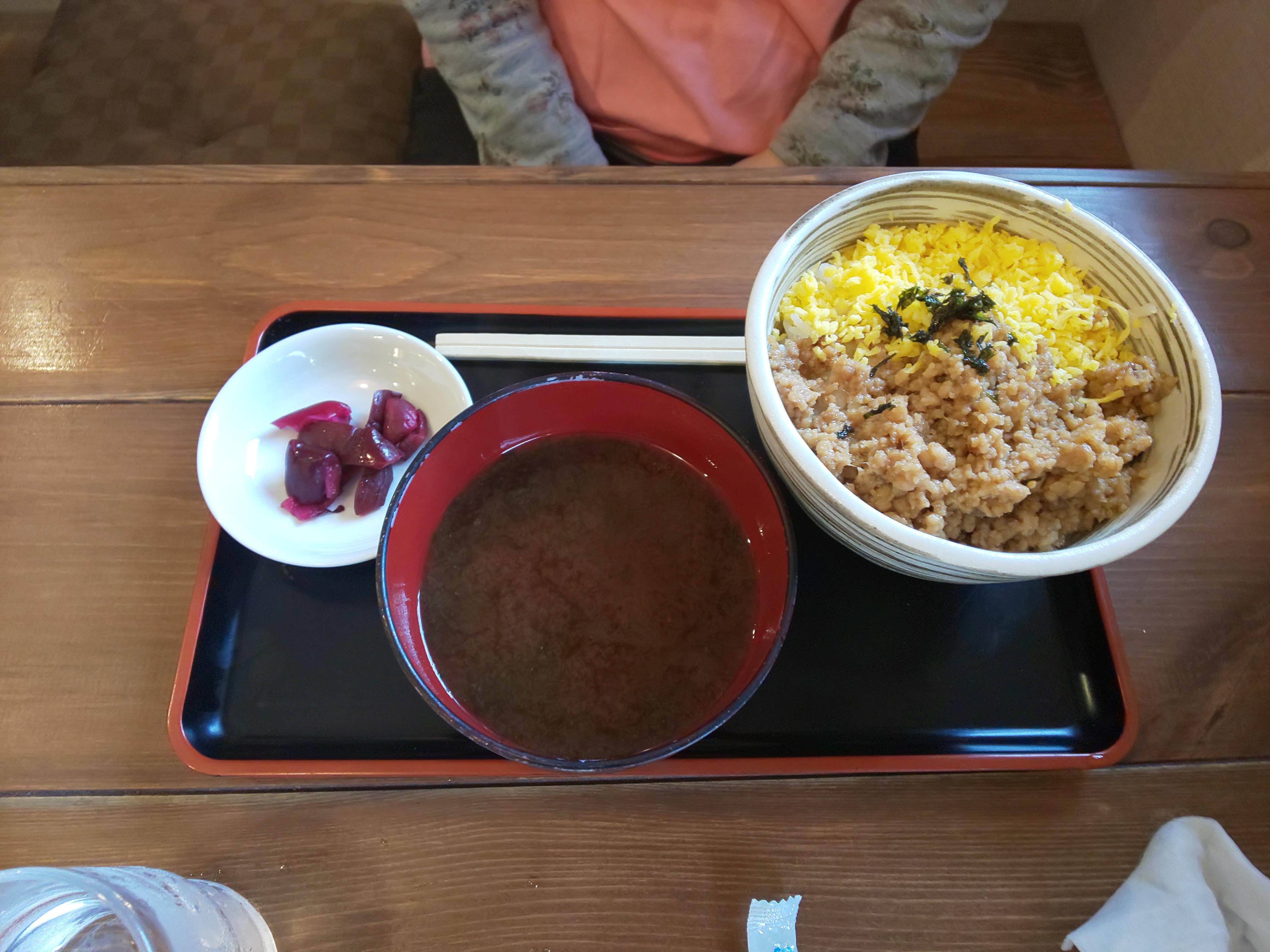 そぼろ丼と赤出汁の定食
